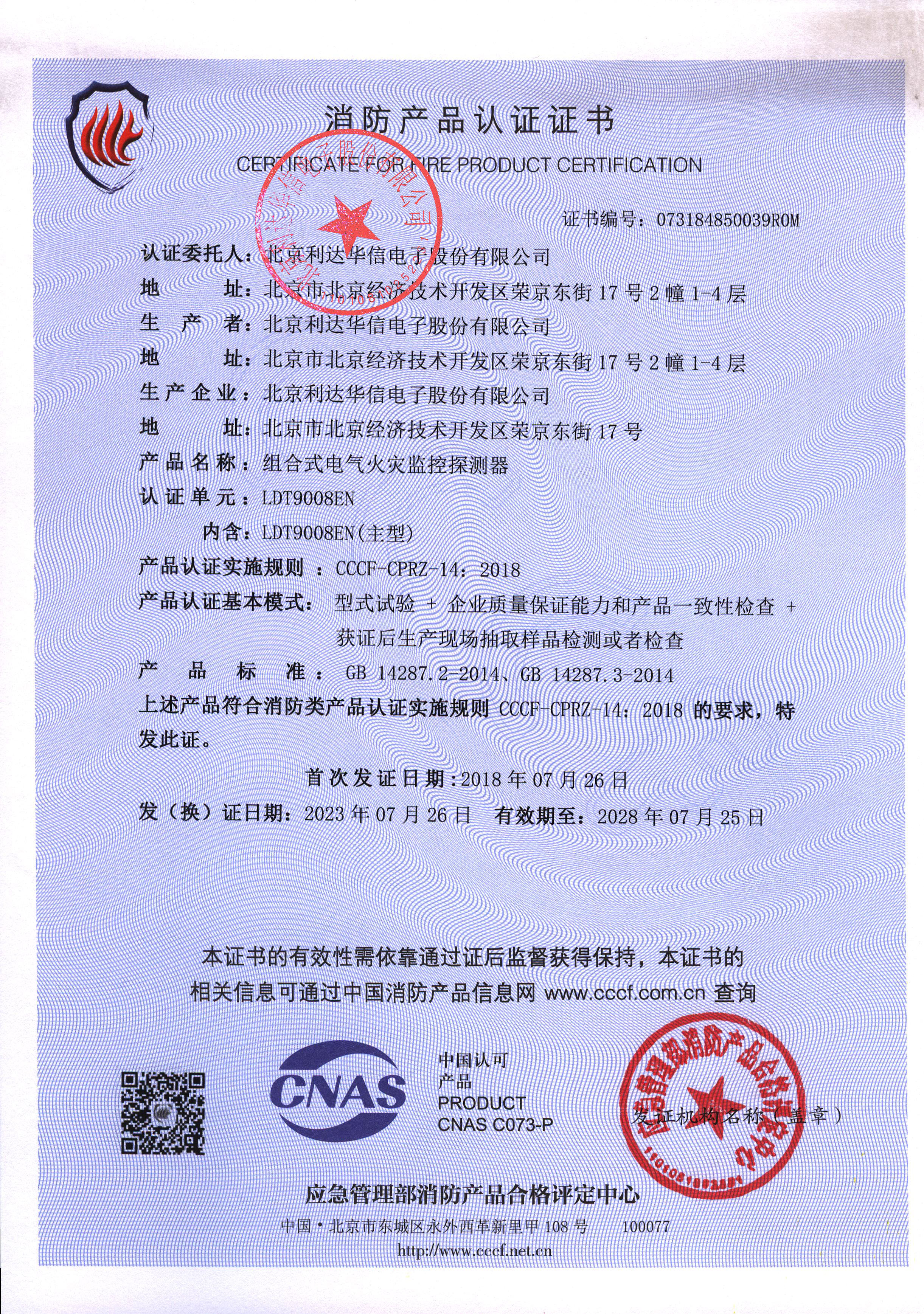 LDT9008EN 組合式電氣火災監控探測器 消防產品認證證書073184850039ROM(蓋公章).jpg